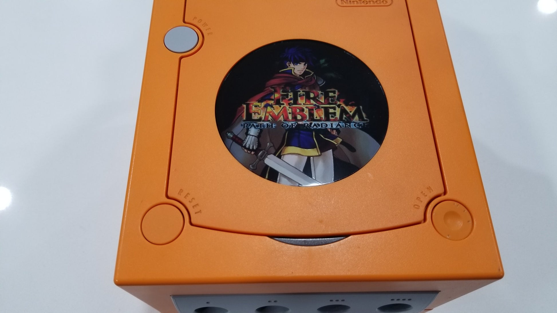 This Fire Emblem custom Gamecube Jewel offers an easy custom replacement to the tired and worn original Gamecube Jewel that came standard on all Gamecubes. This simple modification requires no permanent modification to the system and offers the ability to customize your gamecube. The modification only works on the DOL-001 version of the Gamecube, the version with the digital port, so please confirm you have this version prior to purchase.