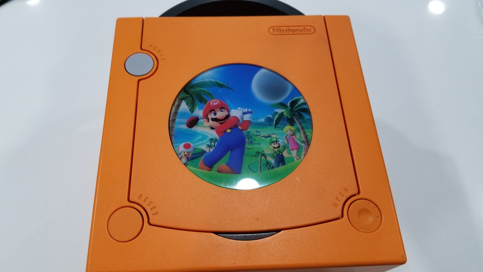 This Mario Golf custom Gamecube Jewel offers an easy custom replacement to the tired and worn original Gamecube Jewel that came standard on all Gamecubes. This simple modification requires no permanent modification to the system and offers the ability to customize your gamecube. The modification only works on the DOL-001 version of the Gamecube, the version with the digital port, so please confirm you have this version prior to purchase.