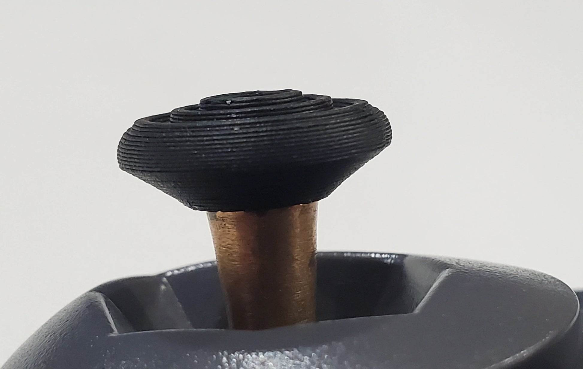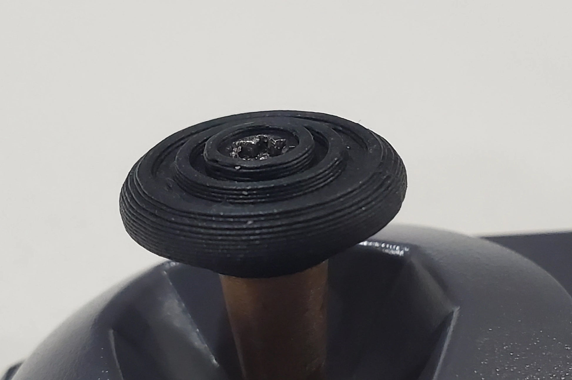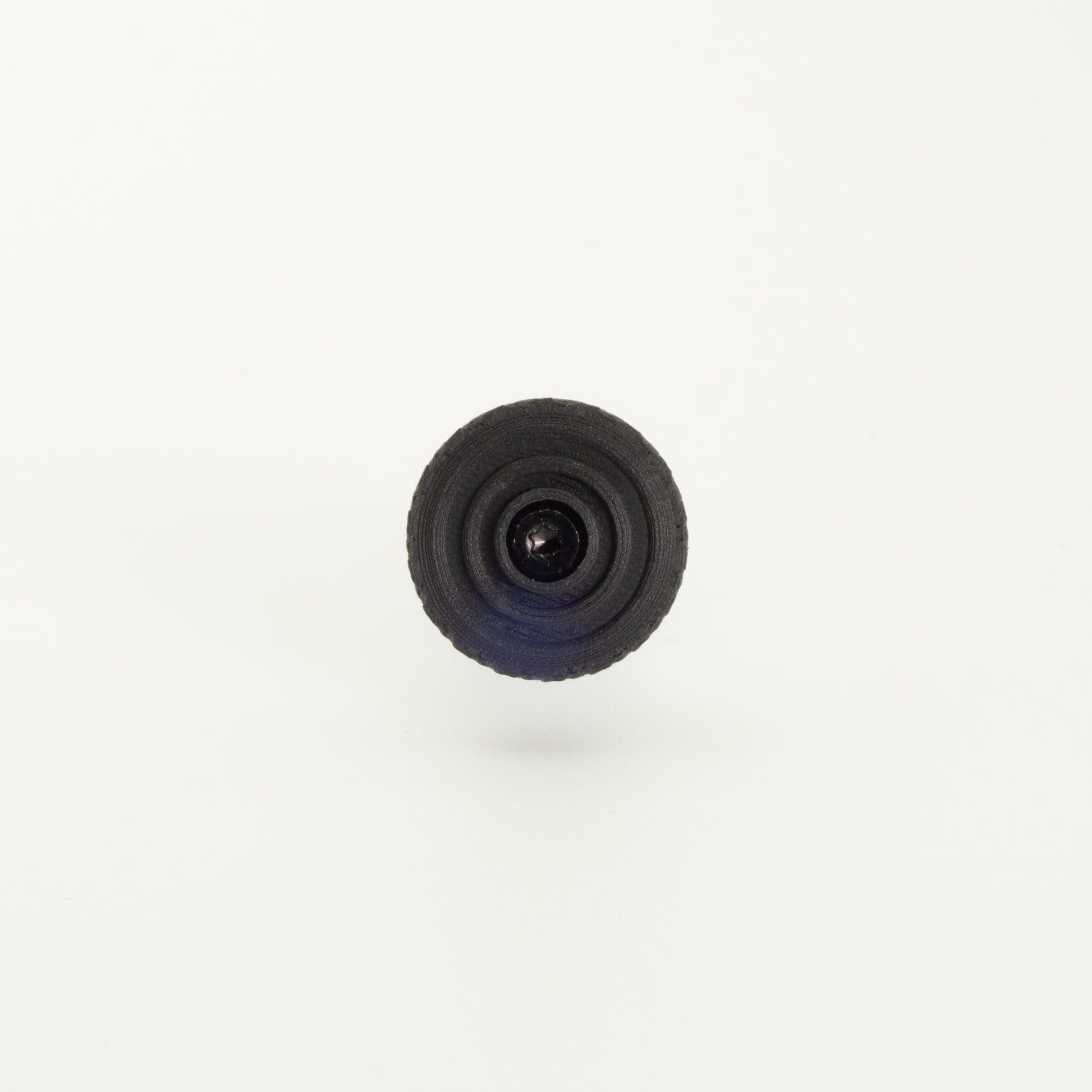 These caps are made from a 3d printed blend of plastic and carbon fiber. They offer excellent grip and a unique feel as compared to the original stick cap. The shape of the cap is also a small departure from the OEM design, giving a better feel when working the side of the cap.
