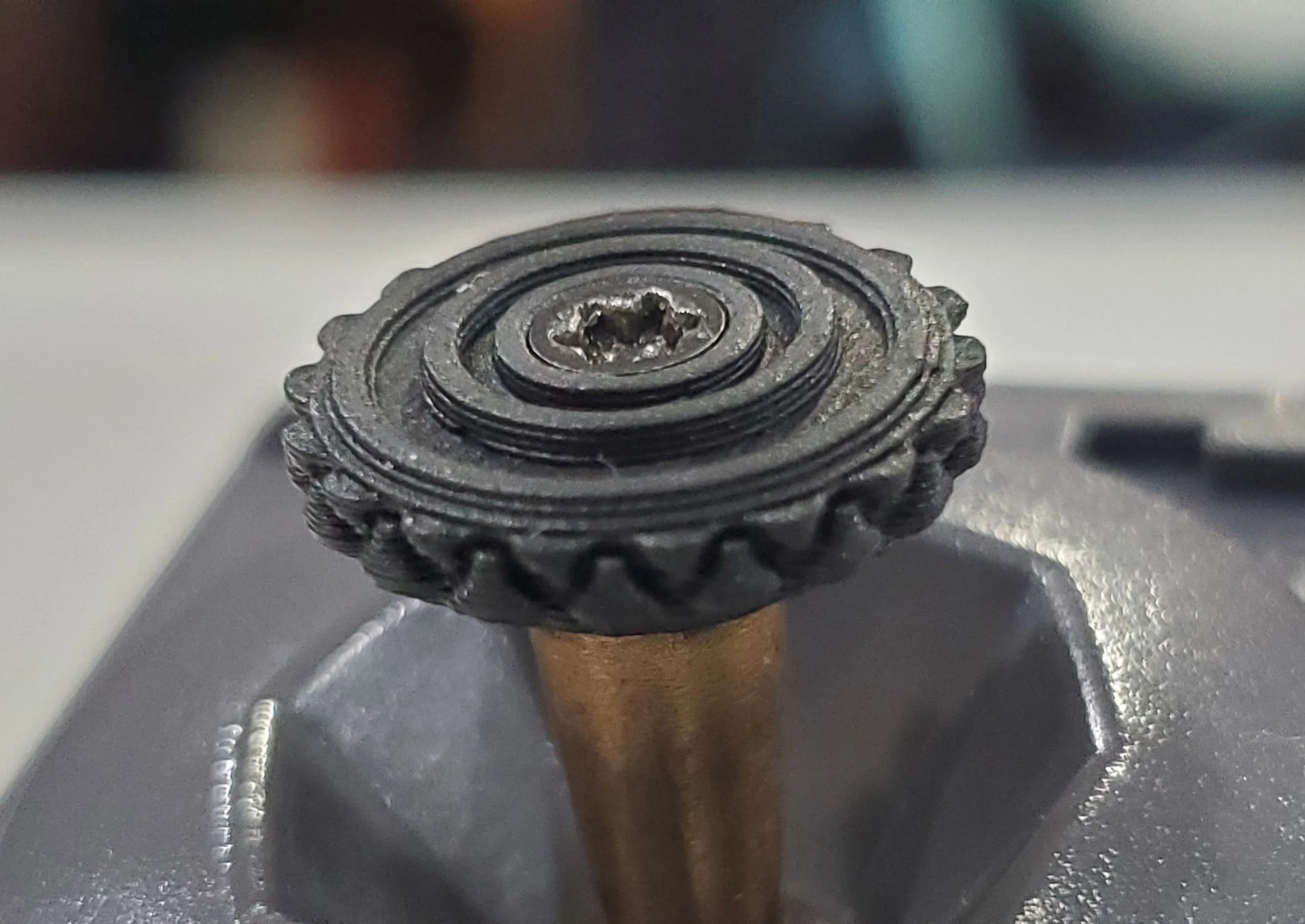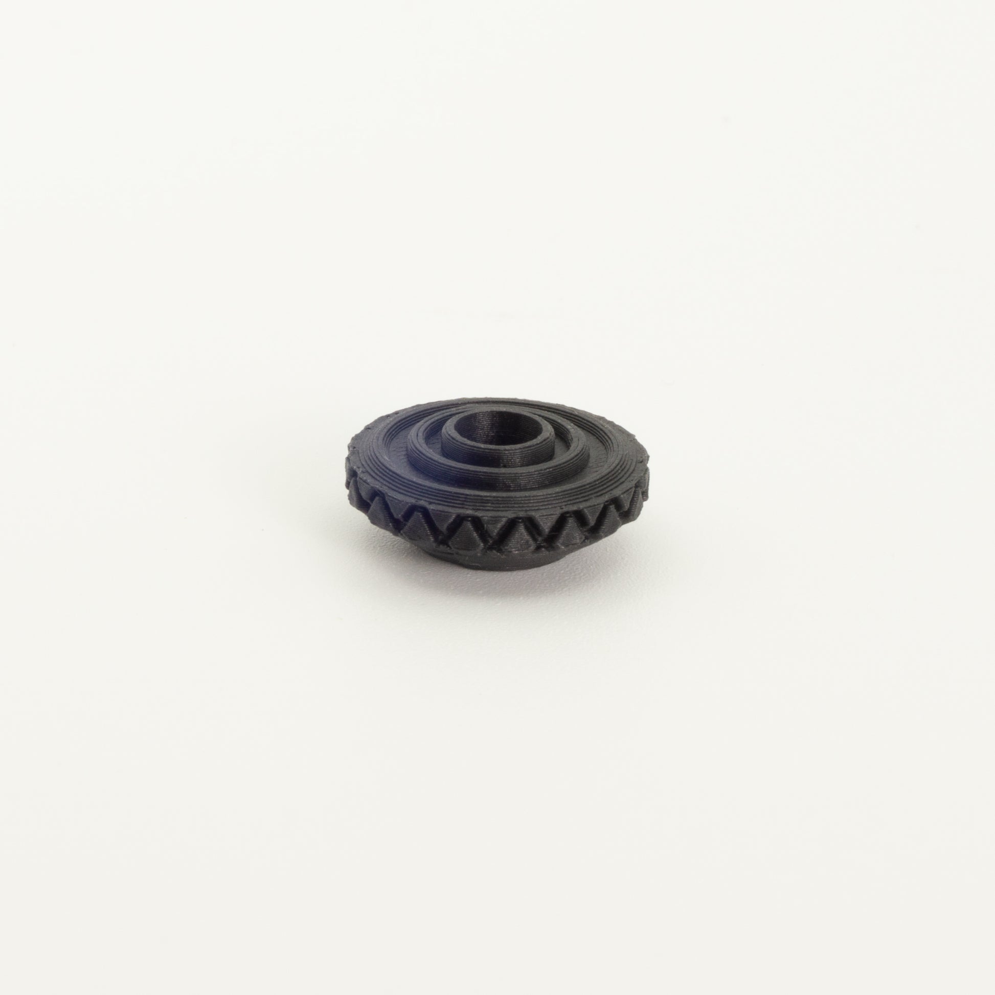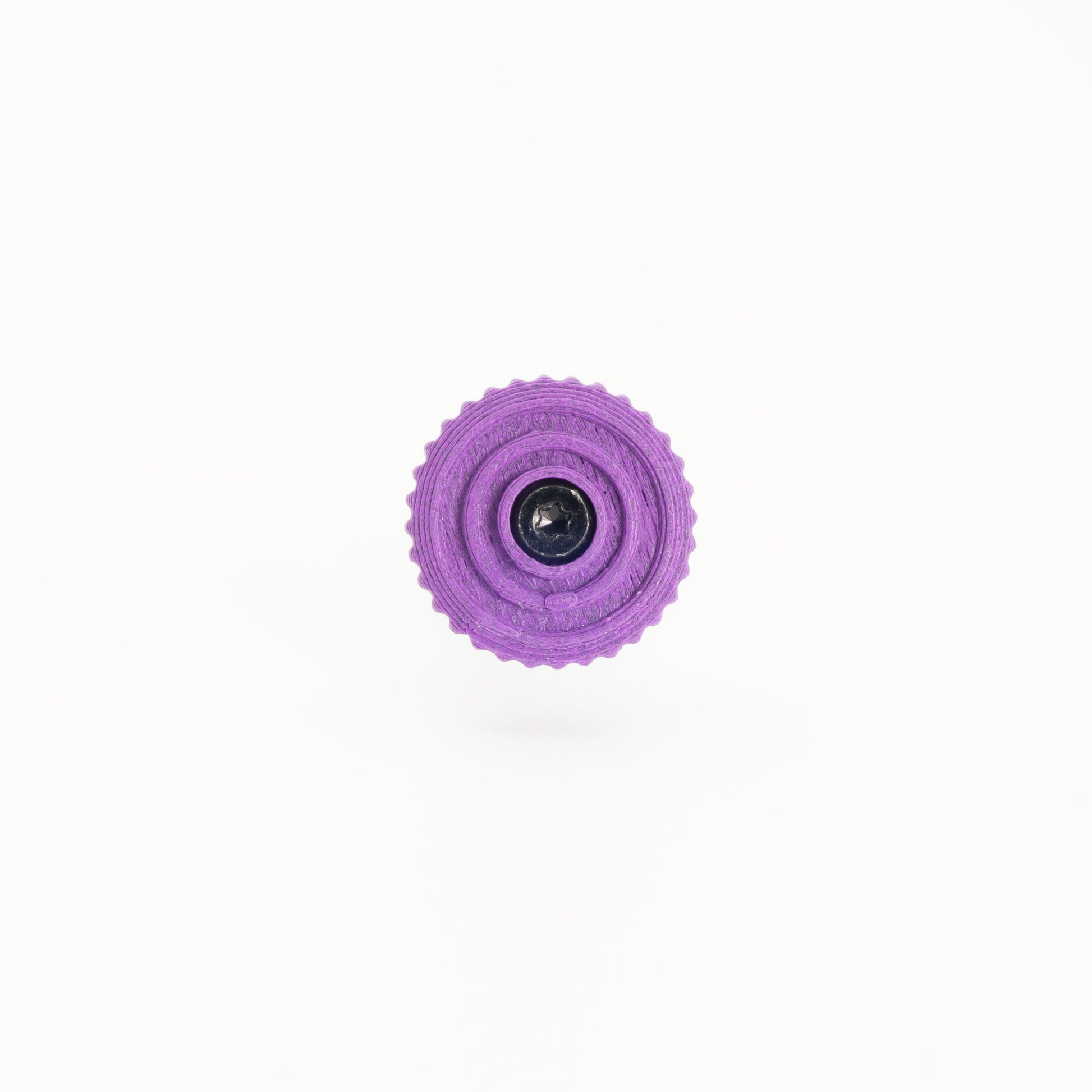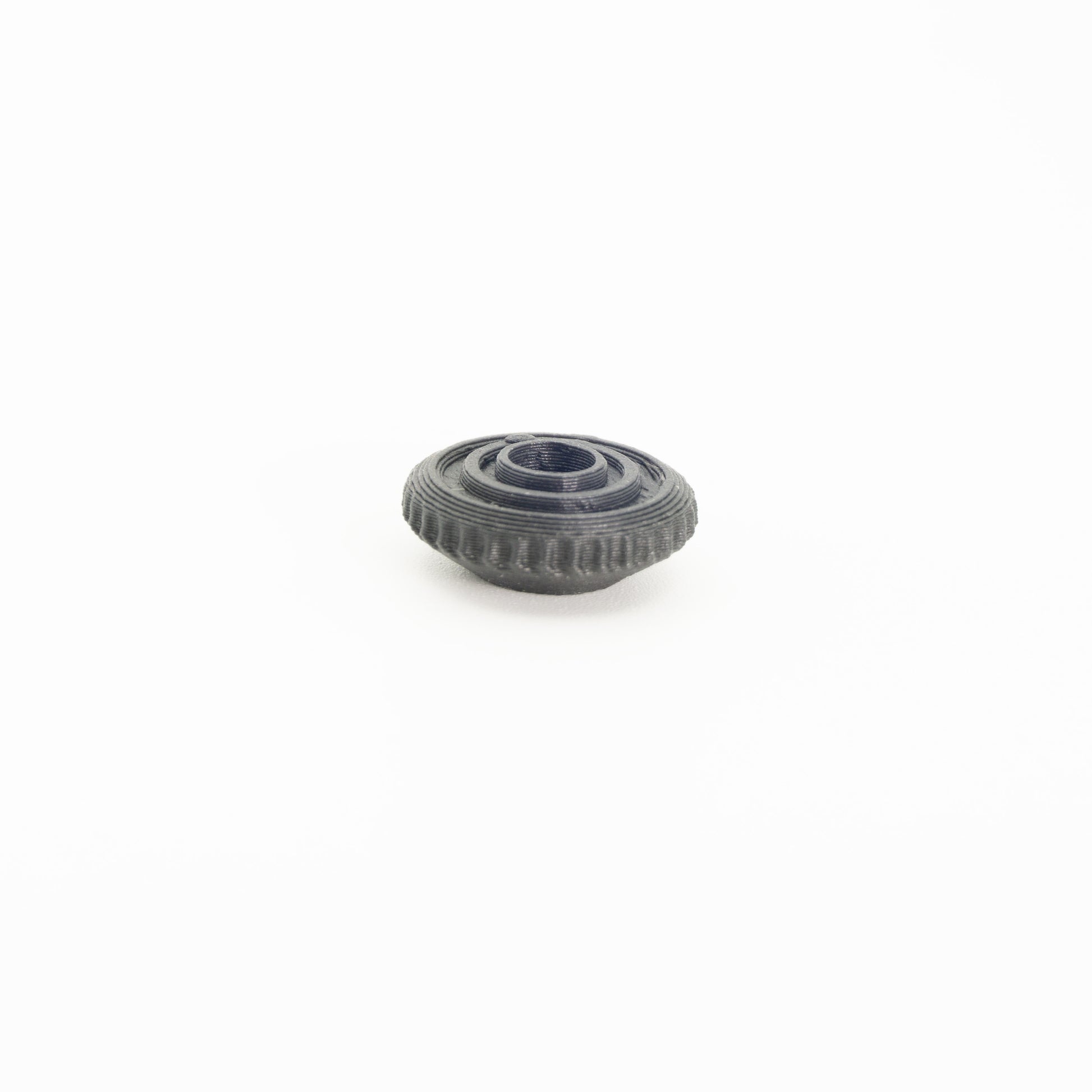These caps are made from a 3d printed blend of plastic and carbon fiber. They offer excellent grip and a unique feel as compared to the original stick cap. The shape of the cap is also a small departure from the OEM design, giving a better feel when working the side of the cap.