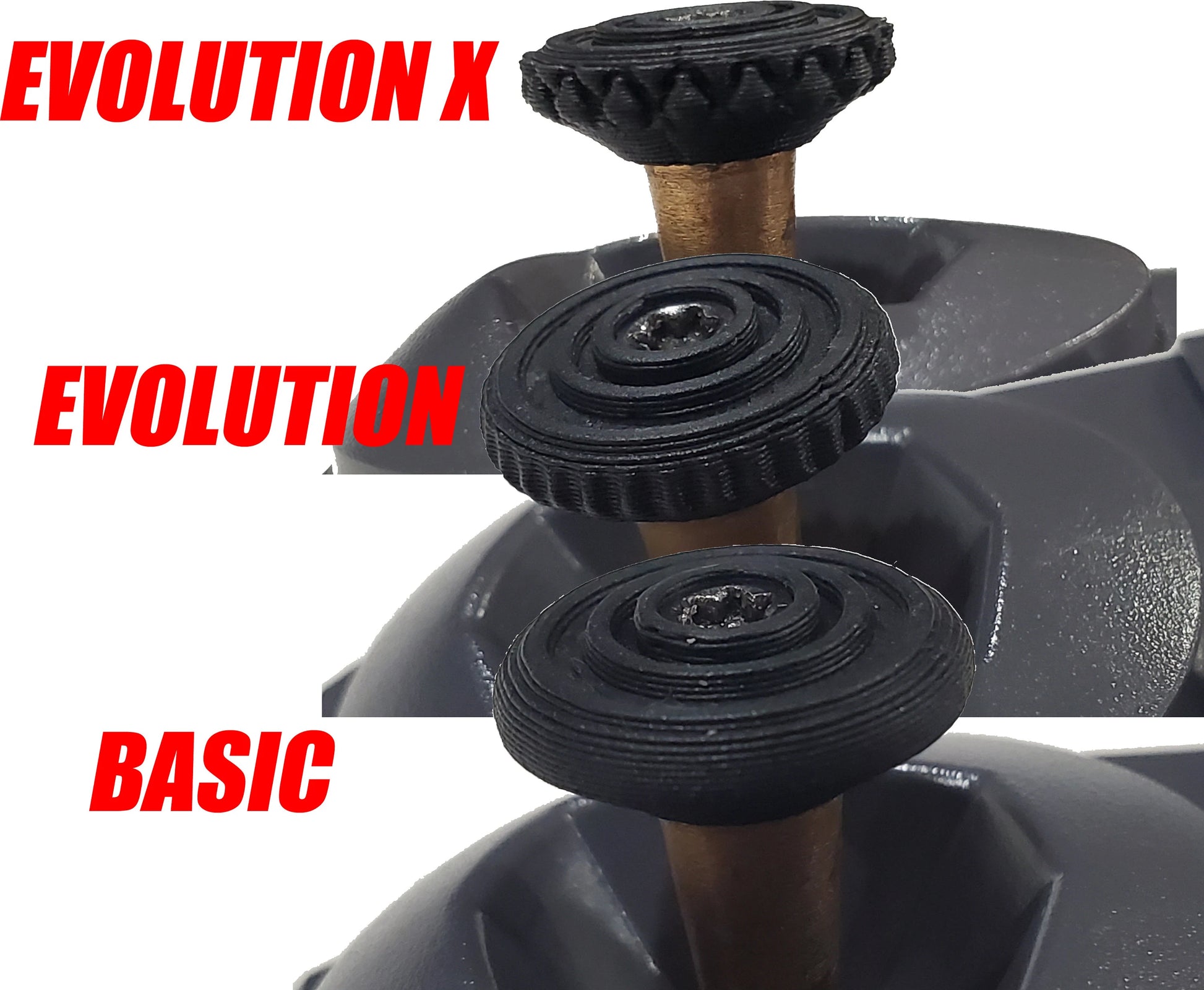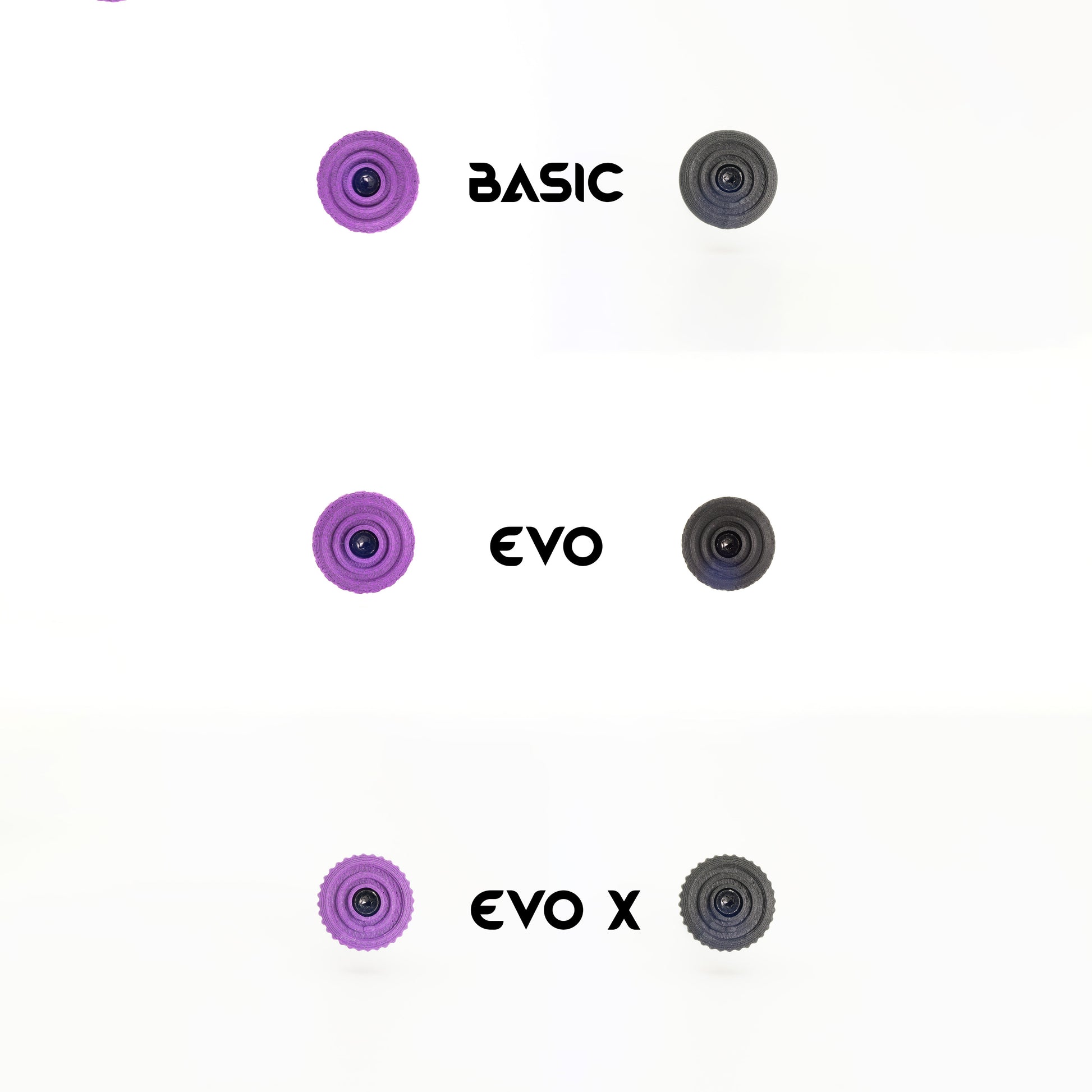 Evolution X - This gets its name for the aggressive X knurling on the side of the cap, the cap offers the most amount of grip to prevent slippage during intense gameplay.