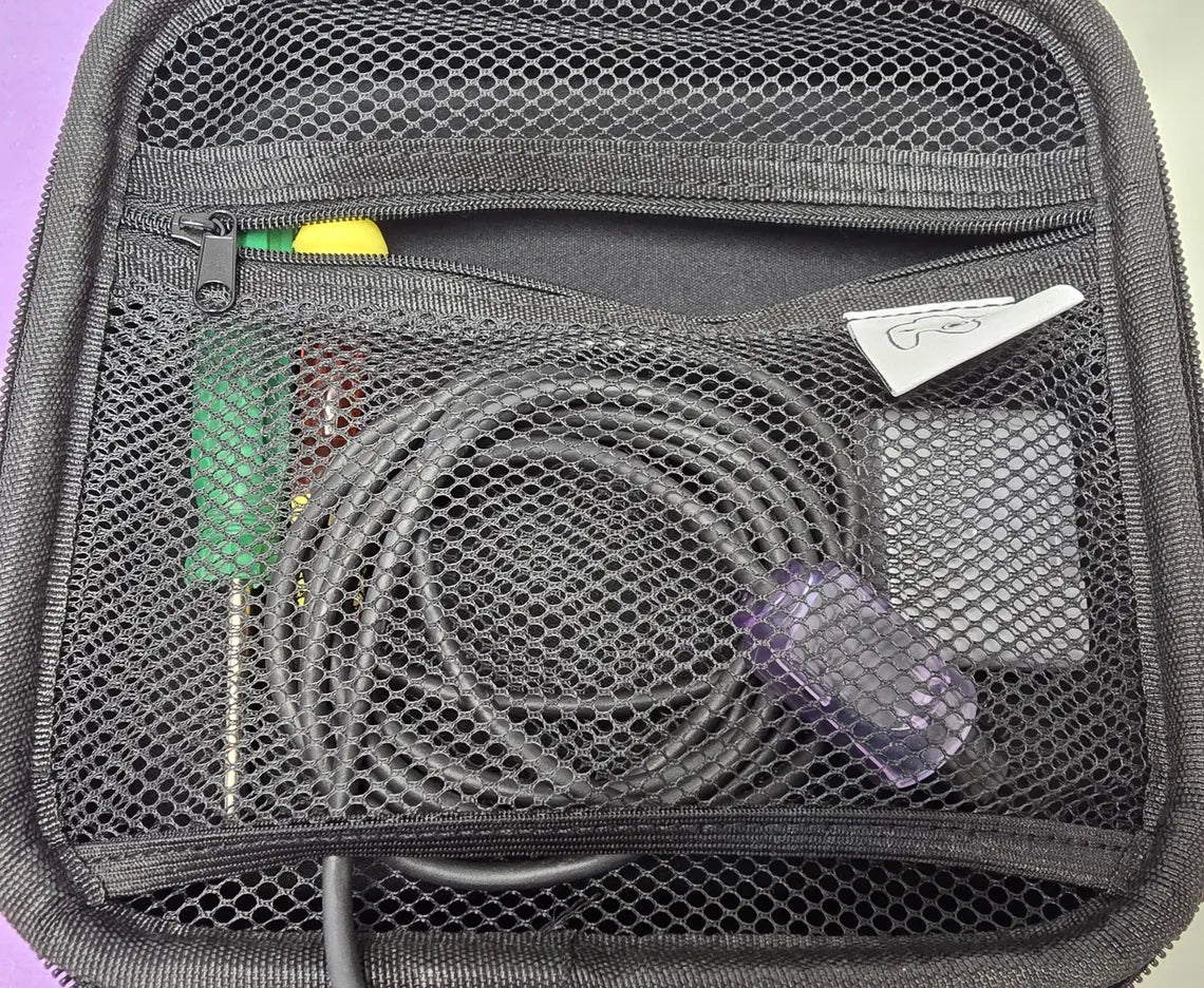This is a custom solution that has been well thought out and has an all in one approach in mind. The case has a black outer shell, black zipper, black rubber zipper tabs, black handle, and black interior lining. The 2 plastic storage bins are included and perfectly fit extra sticks, bowls, gears, stick caps or whatever else you want to make sure you have extras of. In addition, it has its own stand alone cable storage area with a zip pocket for other accessories or tools you want to carry around with your N64 Controller.