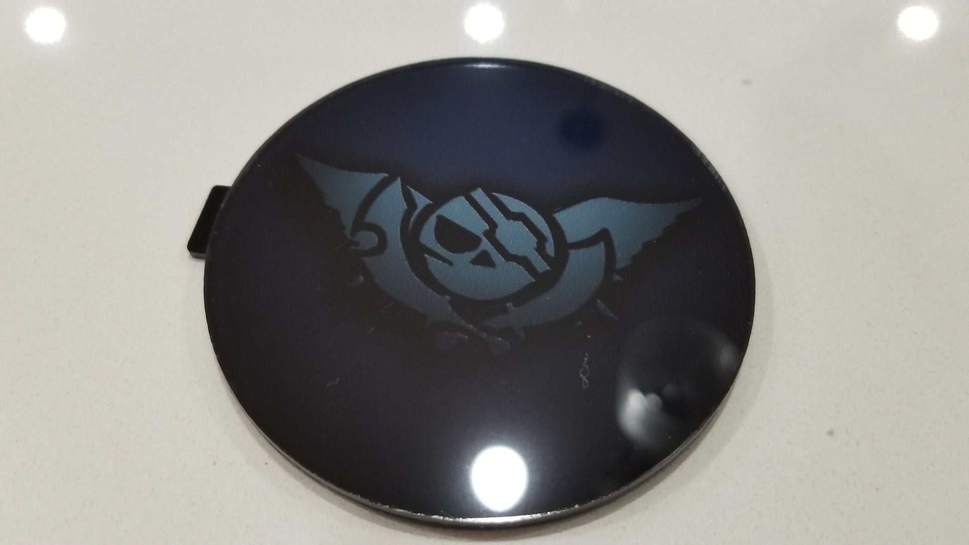 The jewel is made from acrylic with the art under the acrylic. It was made in the same manner as the original GC Jewel. The art is professionally printed with water proof ink. Note, there could be small scuffing or scratching on the surface of jewel as acrylic scuffs very easily. Measures have been taken to prevent this, but it is unfortunately inevitable.