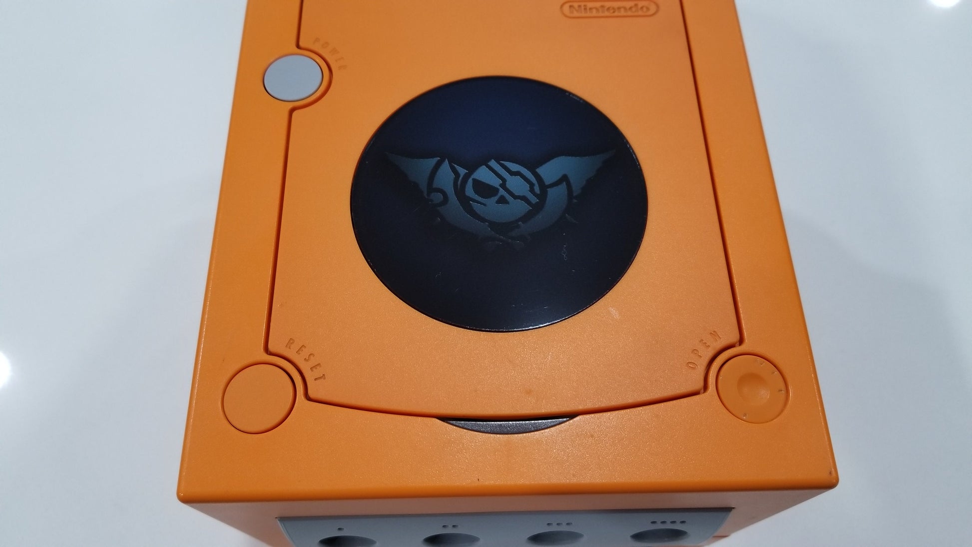 This Skies of Arcdia custom Gamecube Jewel offers an easy custom replacement to the tired and worn original Gamecube Jewel that came standard on all Gamecubes. This simple modification requires no permanent modification to the system and offers the ability to customize your gamecube. The modification only works on the DOL-001 version of the Gamecube, the version with the digital port, so please confirm you have this version prior to purchase.